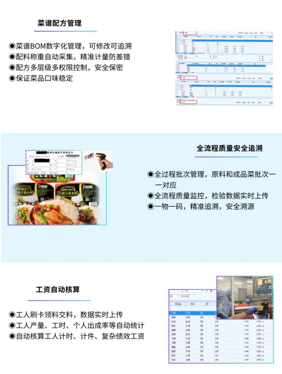 通過(guò)云存儲(chǔ)、物聯(lián)網(wǎng)、工業(yè)互聯(lián)網(wǎng)等技術(shù),對(duì)原料采購(gòu)、配方管理、車(chē)間加工到倉(cāng)儲(chǔ)配送所有環(huán)節(jié)進(jìn)行信息化管理,實(shí)現(xiàn)生產(chǎn)數(shù)據(jù)實(shí)時(shí)自動(dòng)采集、配方配料標(biāo)準(zhǔn)化、全過(guò)程質(zhì)量監(jiān)控、全流程批次追溯,多部門(mén)數(shù)據(jù)互通共享、實(shí)時(shí)協(xié)作,保障了產(chǎn)、供、銷(xiāo)平衡,幫助央廚企業(yè)有效降低成本、提高生產(chǎn)效率、減少人工干預(yù),保證菜品質(zhì)量和口味統(tǒng)一。多維度數(shù)據(jù)報(bào)表,幫助央廚企業(yè)快速制定經(jīng)營(yíng)決策!